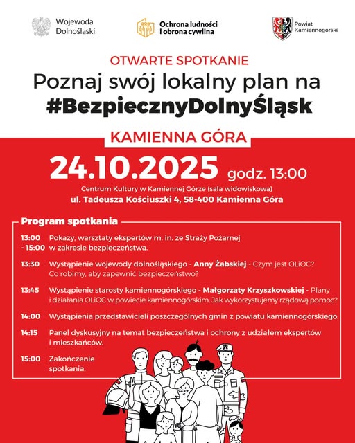 Organizatorzy serdecznie zachęcają mieszkańców powiatu kamiennogórskiego do udziału w wydarzeniu. Wspólna rozmowa o bezpieczeństwie to krok ku silnej, świadomej i odpowiedzialnej społeczności.