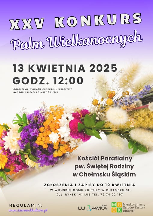 Termin i miejsce: 13 kwietnia 2025 r. (Niedziela Palmowa), godz. 12:00, Kościół Parafialny pw. Świętej Rodziny w Chełmsku Śląskim.