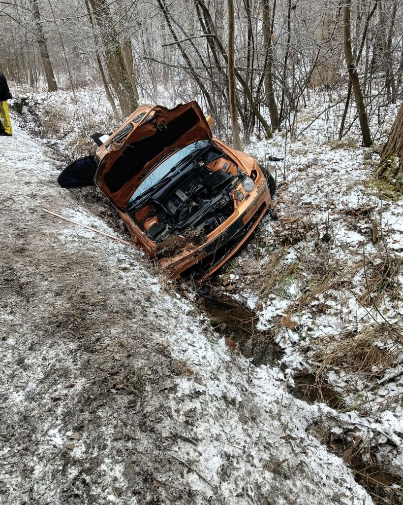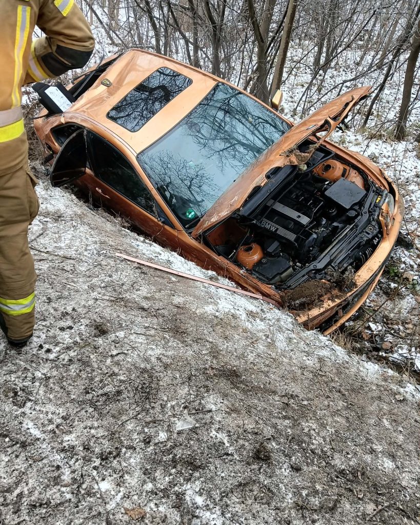 Dziś przed godziną 11:00 doszło do zdarzenia drogowego na łuku drogi W367. 24-letni kierowca z Wrocławia, który posiada prawo jazdy od niespełna dwóch miesięcy, nie dostosował prędkości do warunków na drodze i stracił panowanie nad pojazdem. Samochód obróciło i wypadł do rowu.