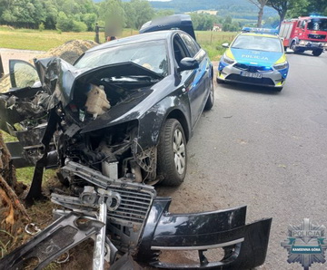 Ze wstępnych ustaleń wynika, że 48-letni kierujący pojazdem osobowym stracił panowanie nad pojazdem i uderzył w drzewo. Czynności, które prowadzili policjanci wskazały, że mężczyzna w organizmie ma prawie 2,5 promila alkoholu. Mieszkaniec powiatu kamiennogórskiego z podejrzeniem obrażeń wewnętrznych został przewieziony do szpitala.