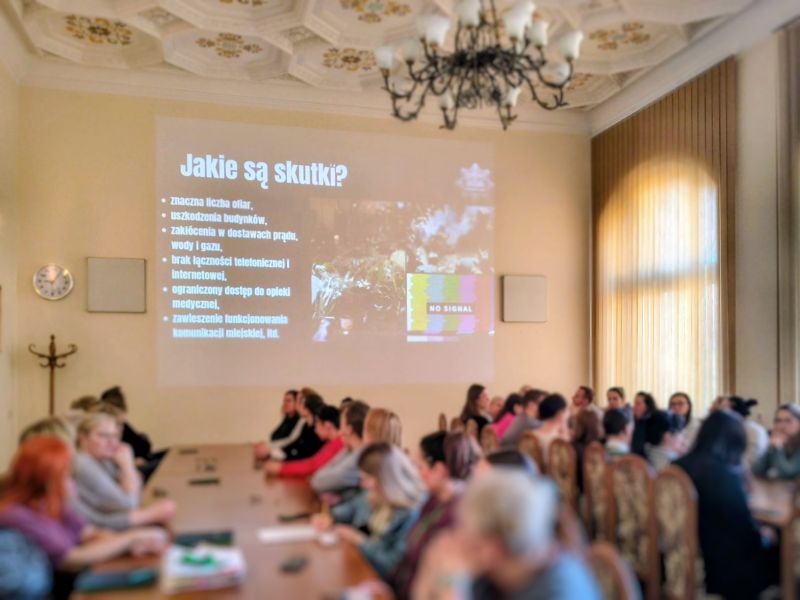 Policjantka podczas swojego wystąpienia omówiła, jakie skutki chcą osiągnąć sprawcy tego typu działań – przede wszystkim wywołanie lęku, zaburzenie poczucia bezpieczeństwa wśród ludzi czy paraliż funkcjonowania instytucji. Przedstawiła podstawowe zasady reagowania w przypadku otrzymania podejrzanej przesyłki, kontaktu z osobą agresywną lub posiadającą niebezpieczny przedmiot, a także otrzymania wiadomości zawierającej groźbę podłożenia ładunku wybuchowego.
