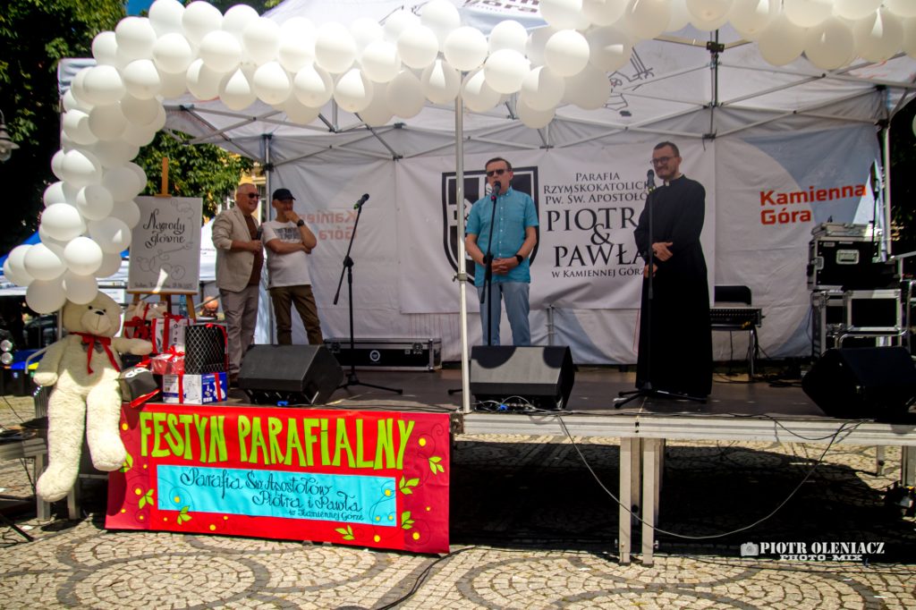 Na kamiennogórskim rynku w sobotę(28 czerwca 2025) odbył się Rodzinny Festyn Parafialny. W programie m.in. występy przedszkolaków, pokazy Młodzieżowej Drużyny Pożarniczej z Ptaszkowa, występy Adama Waśko, Mai Oleśków, Zespołu Biesiadnego ze Świdnika. Gwiazdą dnia był wysęp znanego rapującego księdza Jakuba Bartczaka. Ciekawą propozycją było zwiedzanie kościoła pw. św. Apostołów Piotra i Pawła w Kamiennej Górze z udziałem dyrektor muzeum Małgorzaty Ogonowskiej.