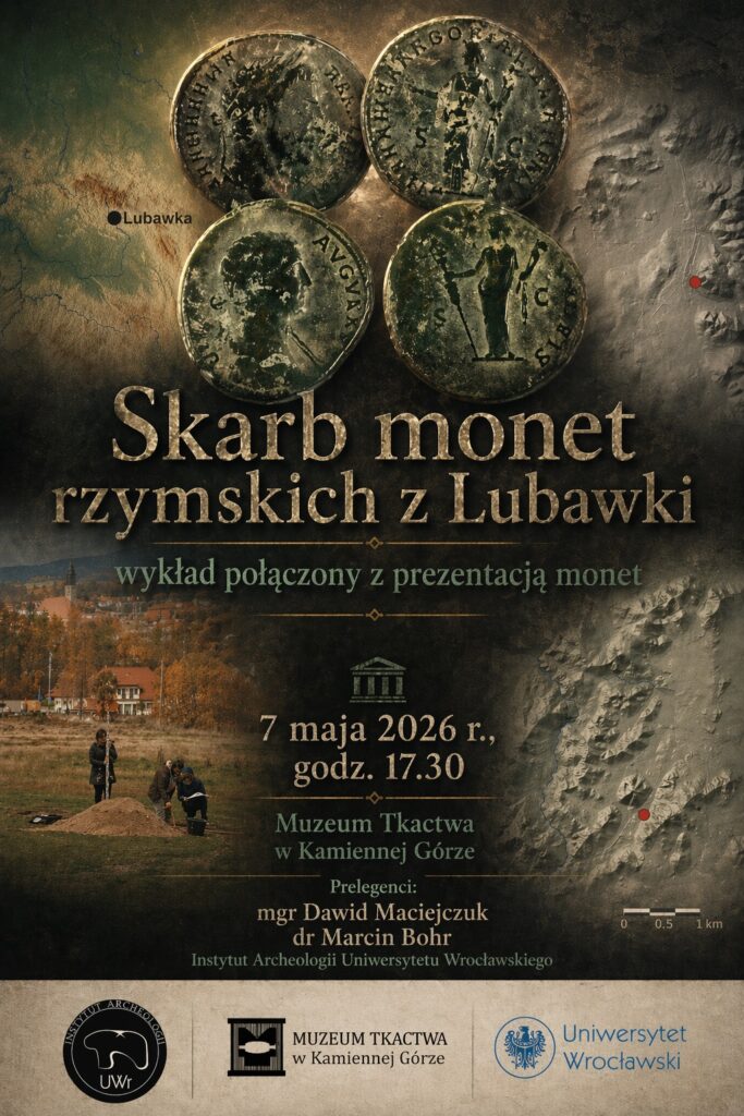 Muzeum Tkactwa w Kamiennej Górze zaprasza na spotkanie połączone z prezentacją „Skarbu monet rzymskich z Lubawki”.