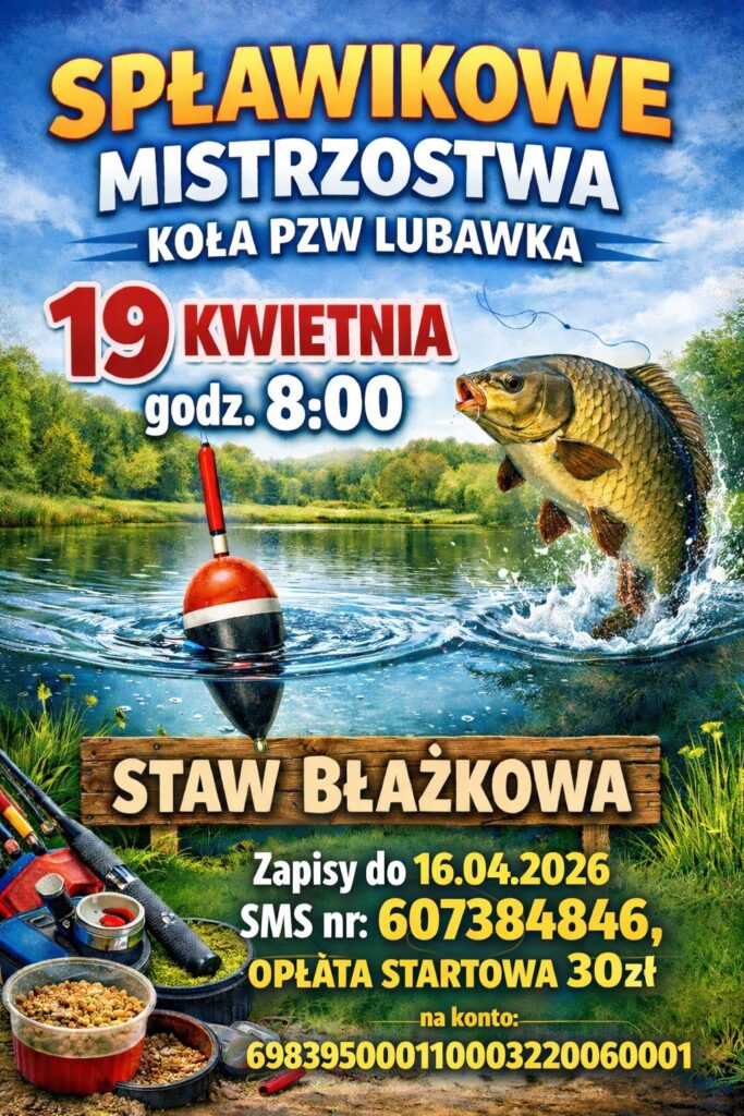 Koło PZW Lubawka serdecznie zaprasza wszystkich miłośników wędkarstwa na zawody spławikowe, które odbędą się 19 kwietnia na stawie w Błażkowej.