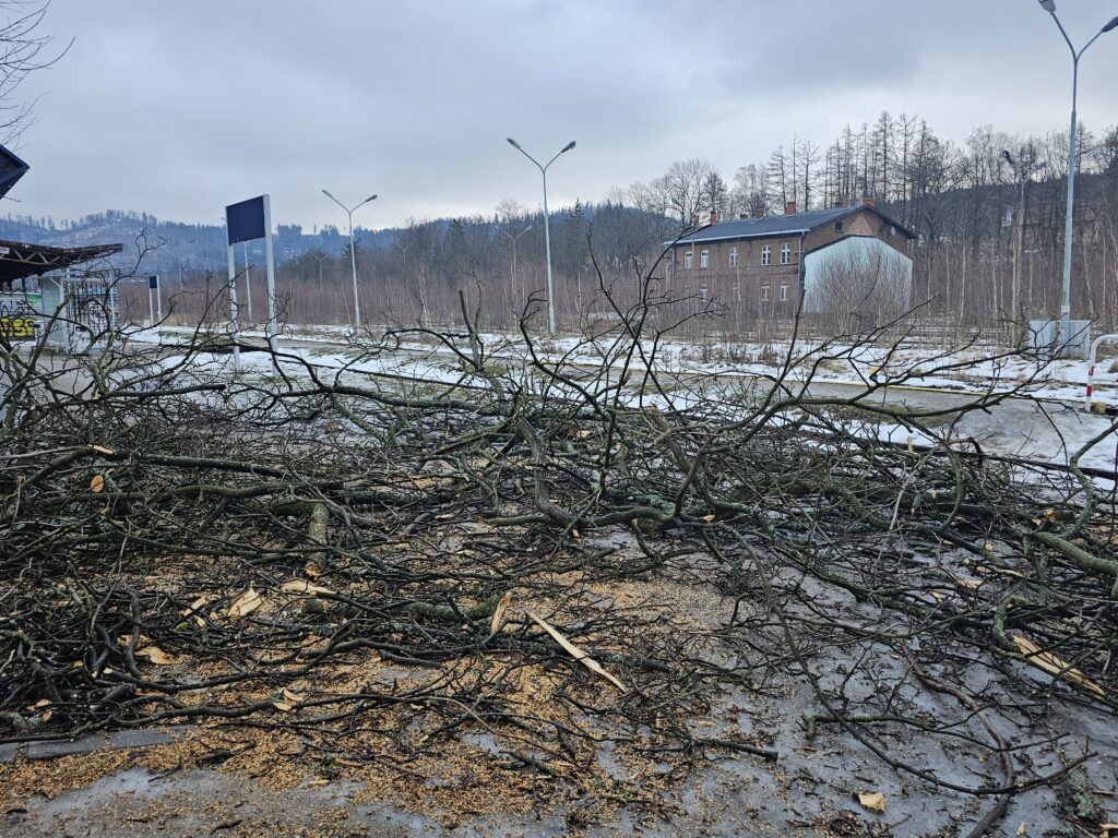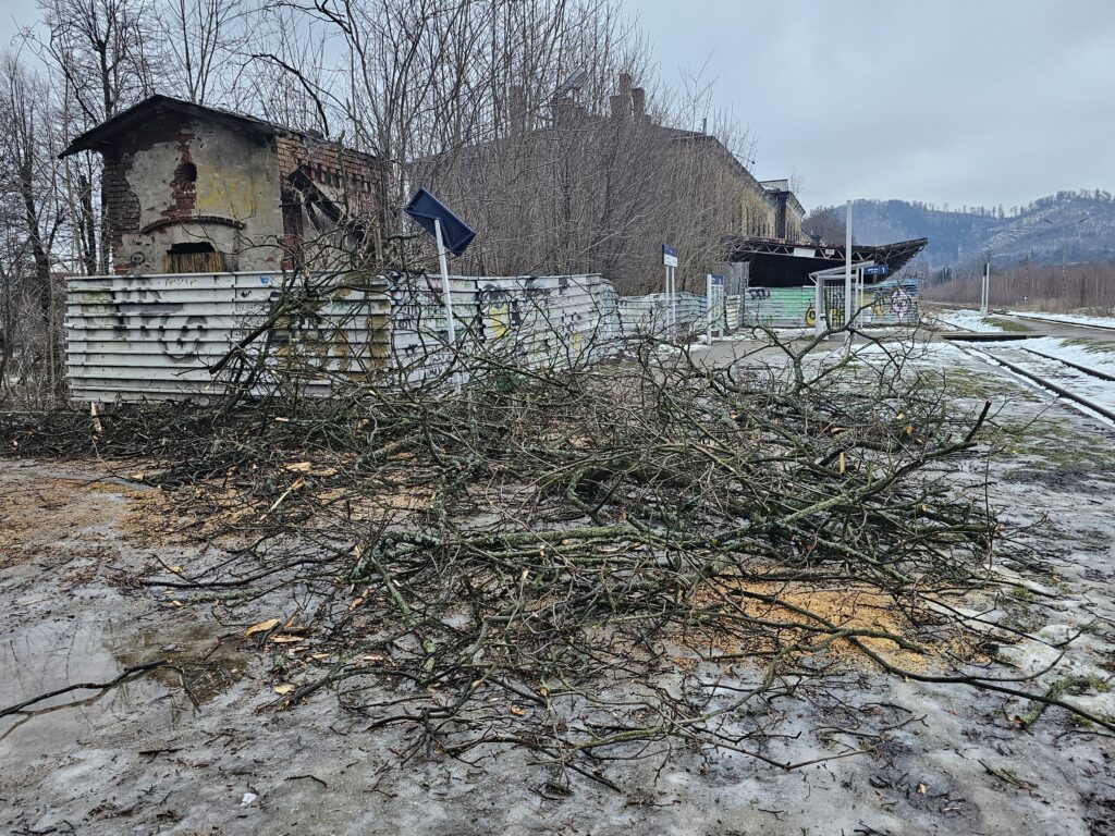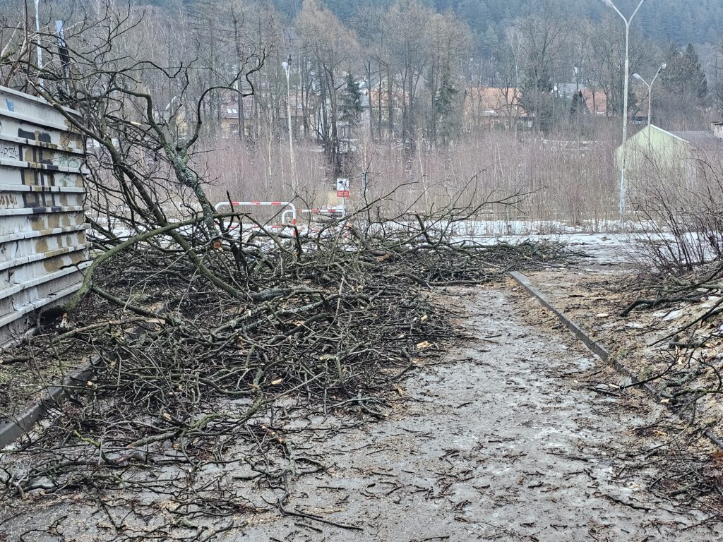 Podróżni korzystający z transportu kolejowego w Lubawce muszą obecnie mierzyć się z poważnymi utrudnieniami. Dojście do przystanku kolejowego jest znacznie utrudnione z powodu prac związanych z wycinką drzew, które trwają od piątku.