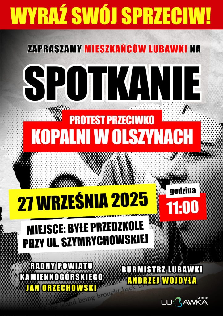 Celem wydarzenia jest wspólne wyrażenie sprzeciwu wobec inwestycji, która – zdaniem mieszkańców – może negatywnie wpłynąć na jakość życia, bezpieczeństwo oraz środowisko naturalne regionu. Podczas spotkania zostaną omówione potencjalne skutki działalności kopalni oraz zintensyfikowanego ruchu ciężarówek w centrum Lubawki.