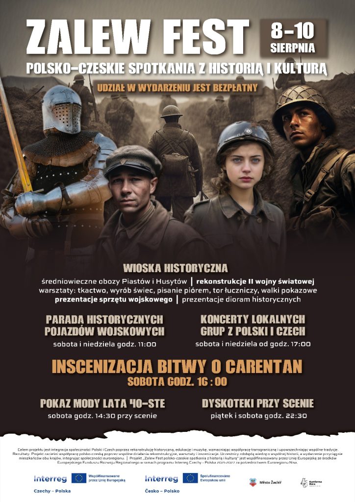 Projekt „Zalew Fest polsko-czeskie spotkania z historią i kulturą” jest współfinansowany przez Unię Europejską ze środków Europejskiego Funduszu Rozwoju Regionalnego w ramach programu Interreg Czechy – Polska 2021-2027 za pośrednictwem Euroregionu Nisa.